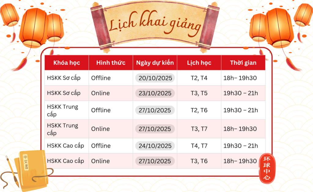 LỊCH KHAI GIẢNG HSKK